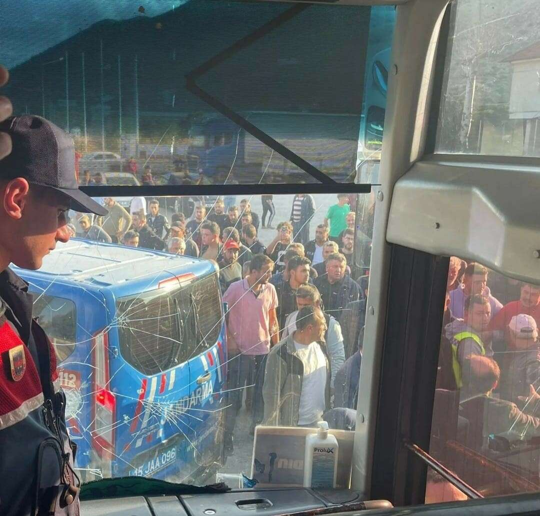 Olayda yaralanan olmazken otobüslerin güvenliği sağlanarak jandarma karakoluna götürüldü. Jandarma ekipleri olayla ilgili inceleme başlattı.