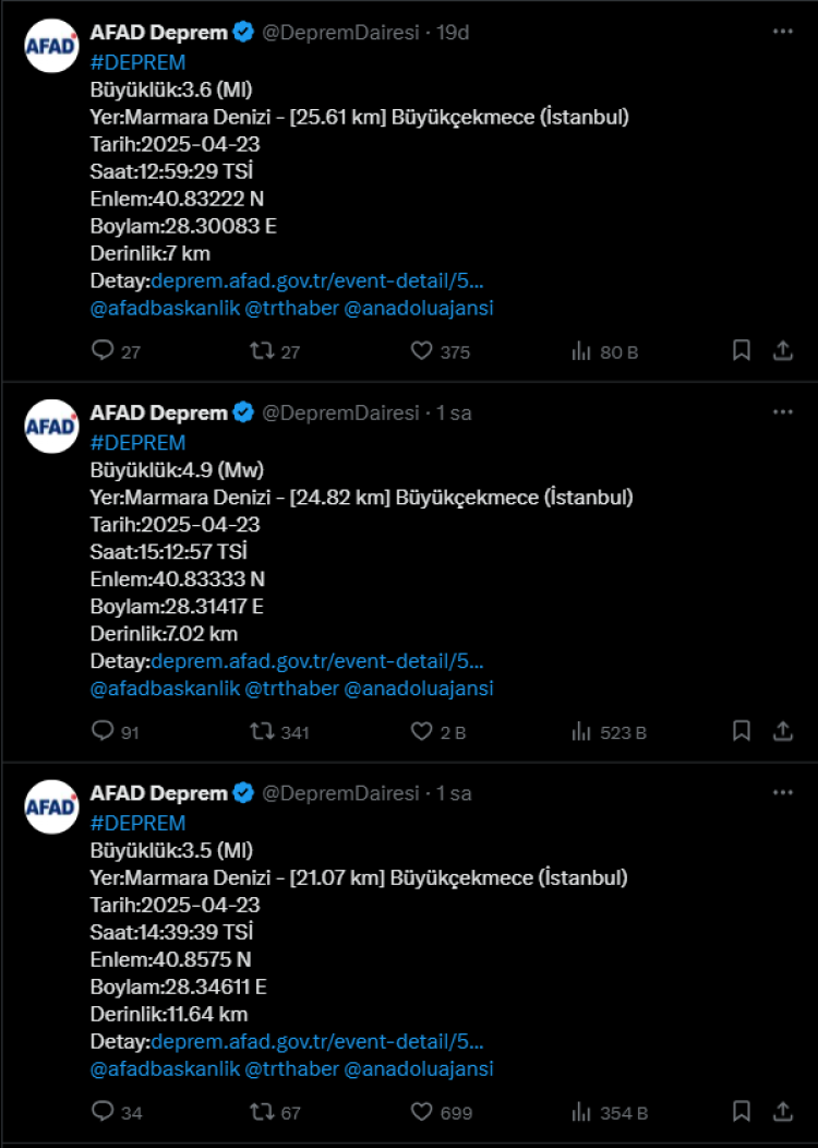 Yetkililer, vatandaşları resmi kaynaklardan yapılacak açıklamaları takip etmeleri ve hasarlı binalara girmemeleri konusunda uyardı. İstanbul Valiliği ve ilgili kurumlar saha taramalarına başladı.