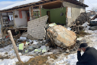 Depremde dağdan kopan kayalar evlerin üzerine düştü