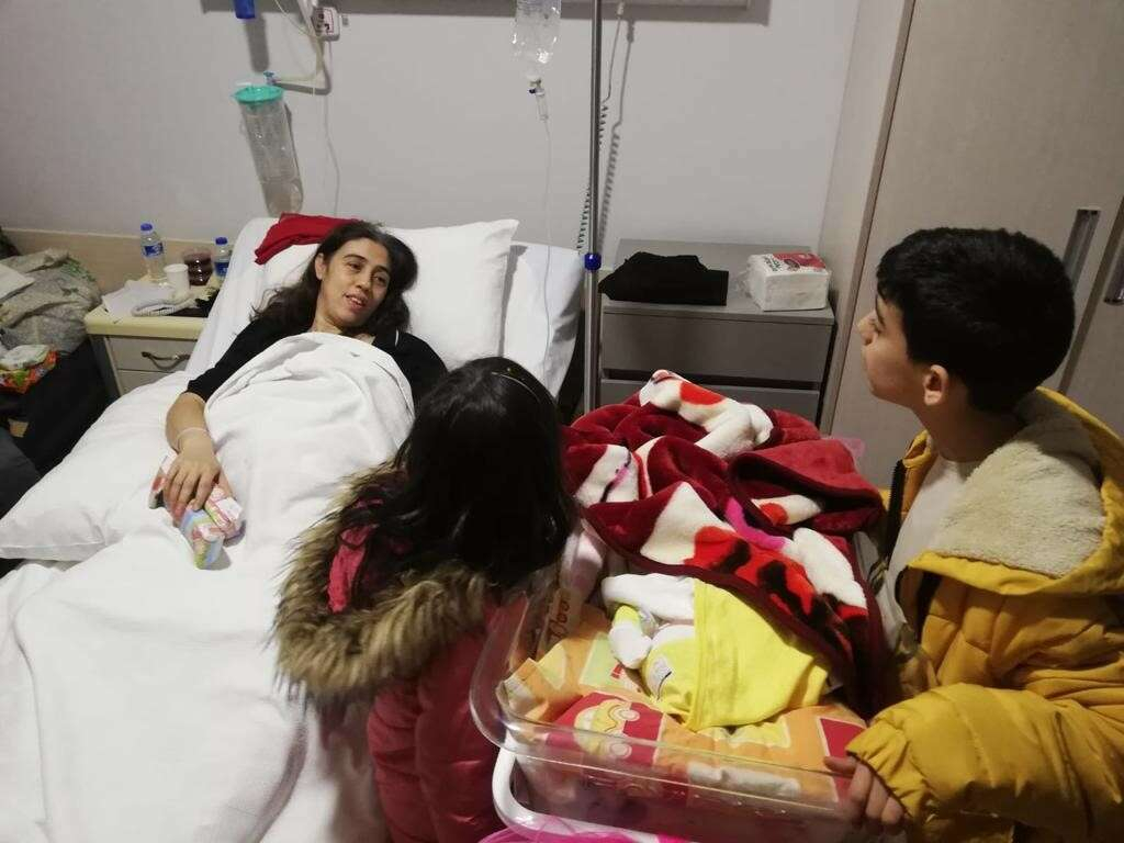 Enkazdan kurtulunca olay yerindeki bir araç ile hamile eşinin Alanya'ya götürüldüğünü anlatan baba Resul Kurt, depremden bir gün sonra eşinin Alanya'daki hastanede doğum yaptığını ve bebeğinin dünyaya geldiğini kaydetti. Kurt, "Biz aşağıya indikten sonra ayaklarımız parçalanmıştı, kesilmişti. Çünkü yerlerde cam eşyaların, kırılan beton ve demir parçaları vardı. Aşağıya indiğimizde bir araç vardı. Eşim ve çocuğumu olay yerinden araçla aldılar, Alanya'ya doğuma götürdüler. Eşim korkudan, yaşadığı travmadan dolayı kendini kasmış. Çocuk da travma geçirmiş. İlk gün kas gevşetici ilaçlar vermişler bir gün sonra doğum gerçekleşti" şeklinde konuştu.