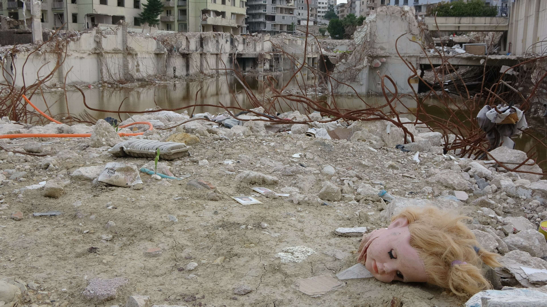 Rezidansın enkazının molozlarının arasında oyuncak, ayakkabı ve çok sayıda fotoğraf karelerinin yer aldığı görüldü. Bir vesikalık fotoğrafın da su üzerinde hareket etmesi kameralara yansıdı.