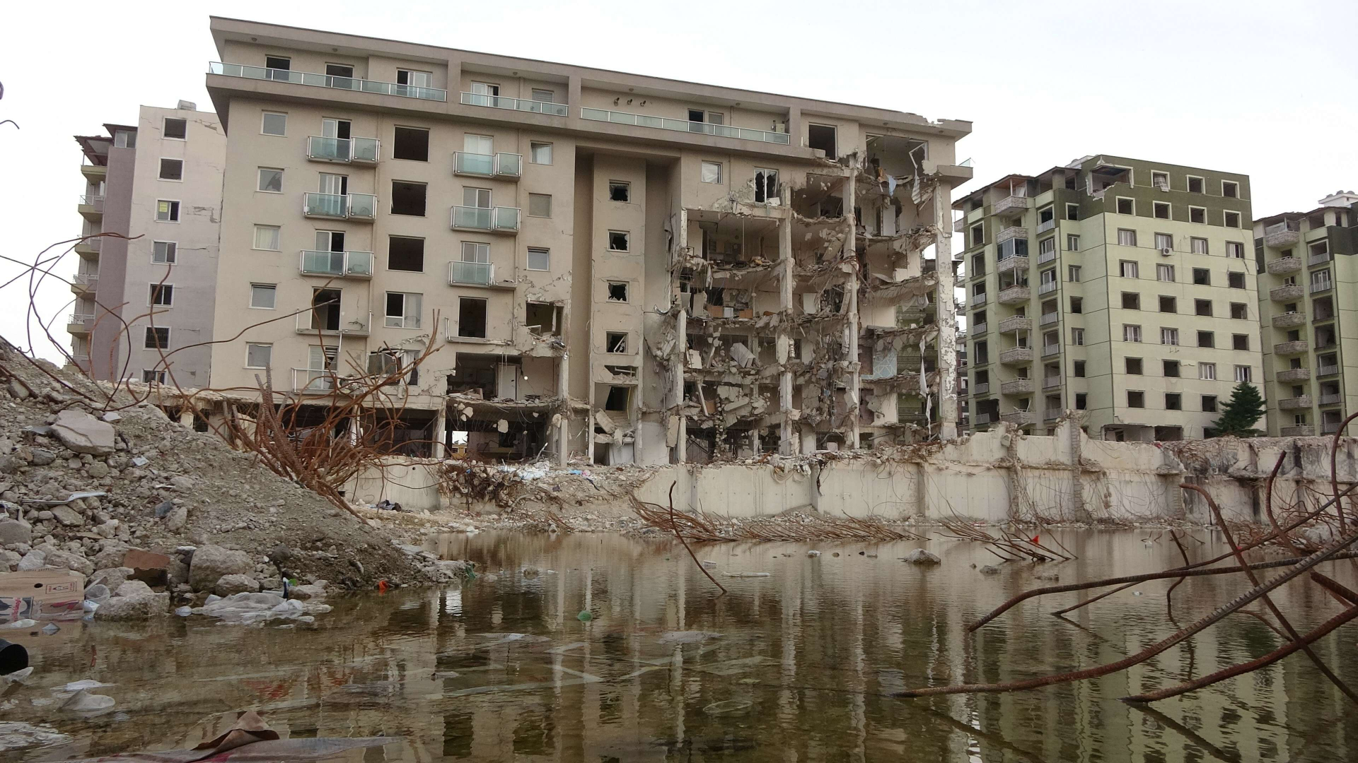 Depremde yüzlerce kişiye mezar olan Rönesans Rezidans'ın enkazı suyla doldu