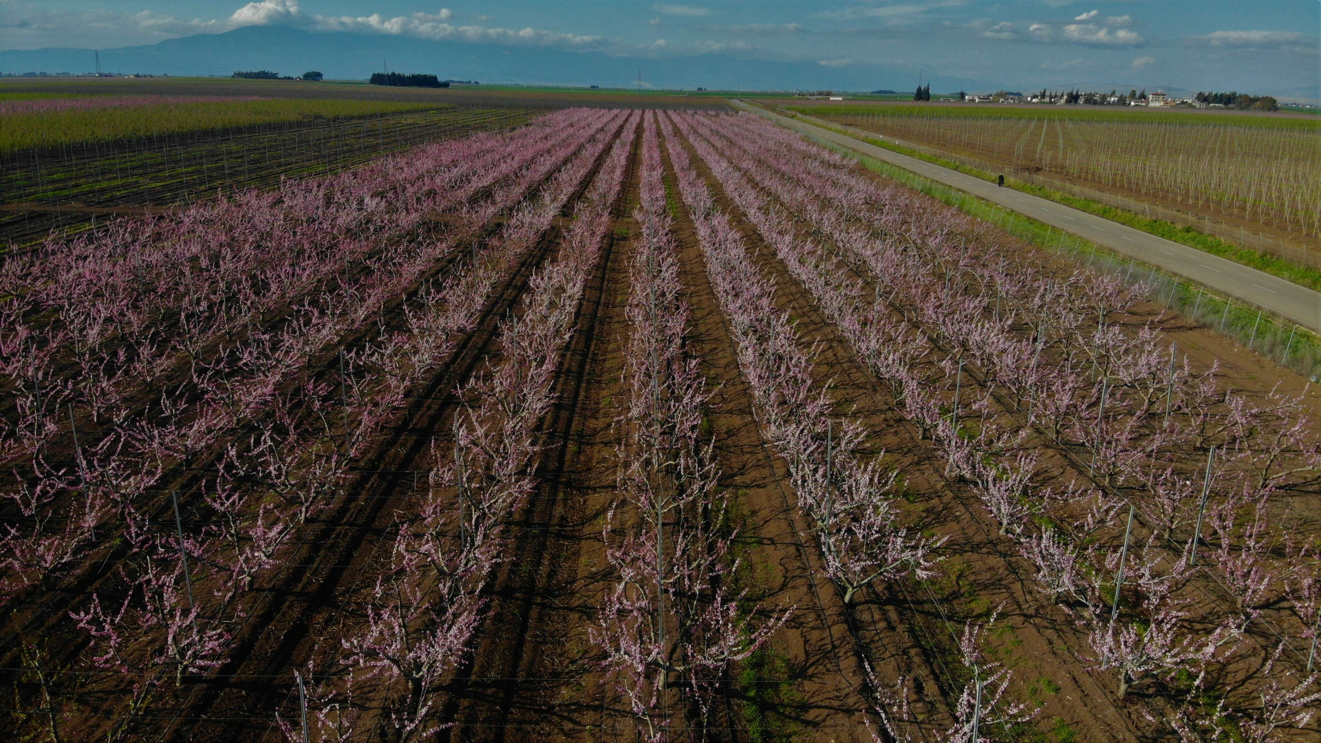Şeftali ağaçlarının pembe çiçekleri ovayı adeta renk cümbüşüne çevirdi. Rekoltenin yüksek olduğu ovada üretilen meyvelerin, Rusya ve Almanya’nın yanı sıra orta Avrupa ülkelerine ihraç edildiği belirtildi. Meyve bahçelerinin rengarenk çiçekleri dron ile de görüntülendi. Havaların ılıman gitmesiyle badem ve erik ağaçlarının çiçeklenme döneminin sona erdiği öğrenildi.