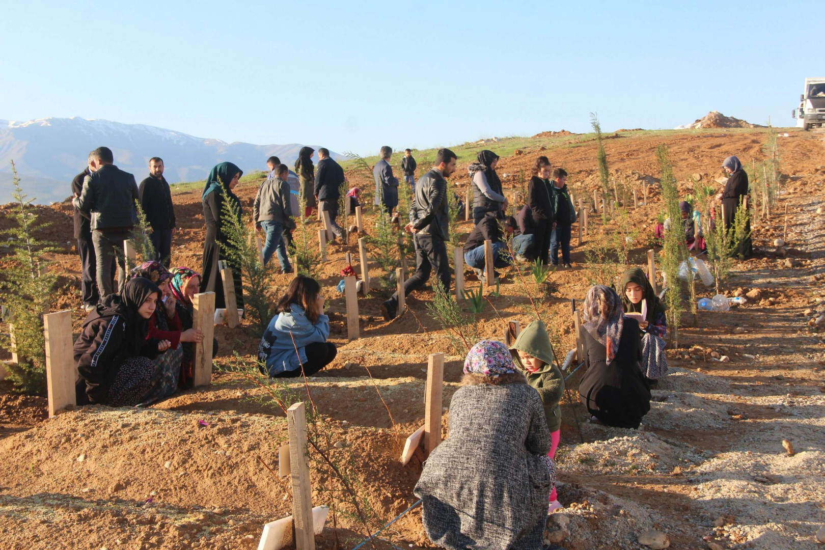 Malatya'da geçici süreyle görevlendirilen Zonguldak Ereğli İlçe Müftüsü Sabri Kütükçü ve diğer müftülük görevlileri de mezarlıkta depremzedelerin yanında yer aldı.