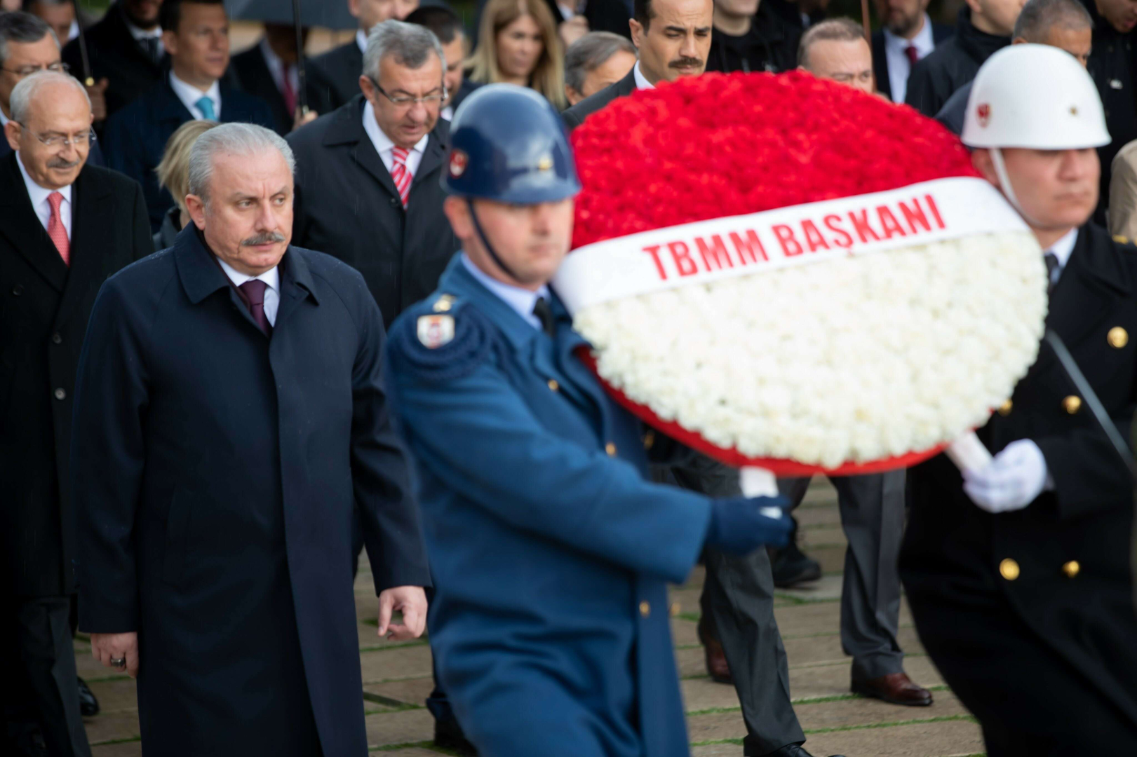 Aslanlı Yol'dan yürüyerek Atatürk'ün mozolesine gelen heyet, mozoleye çelenk bırakılmasının ardından saygı duruşunda bulundu ve İstiklal Marşı okudu. Heyetle birlikte daha sonra Misak-ı Milli Kulesi'ne geçen TBMM Başkanı Şentop, Anıtkabir Özel Defteri’ni imzaladı.