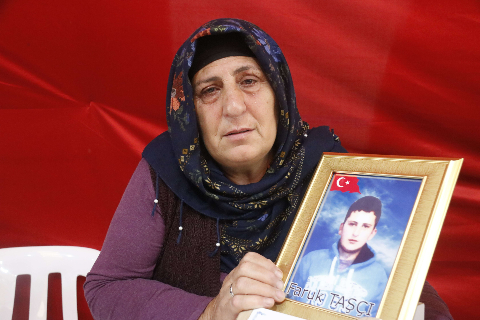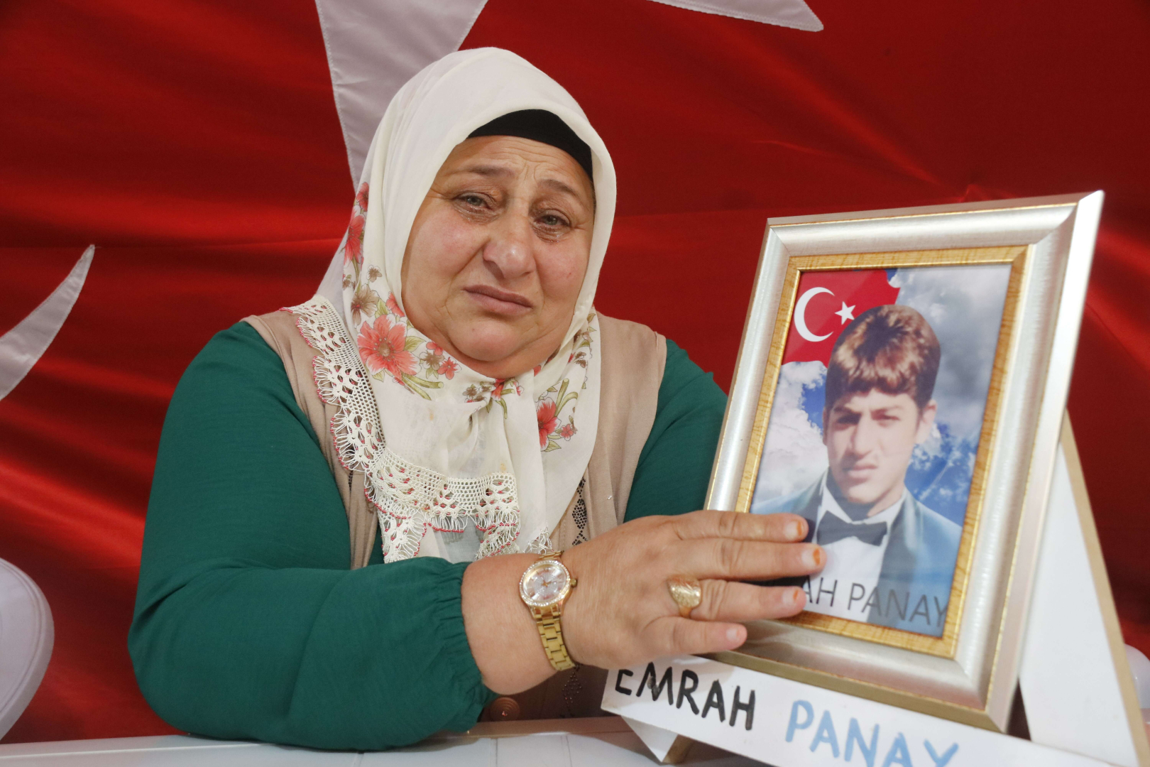 Oğlu Emrah için İstanbul’dan gelip evlat nöbetini sürdüren Aynur Panay, “Oğlumu kaçırıp götürdüler. 10 yıldır oğlum dağda. Emrah, ne olur çık gel. Ben burada perişan, kardeşlerin orada perişan. Kurban olayım artık gel” diye konuştu.