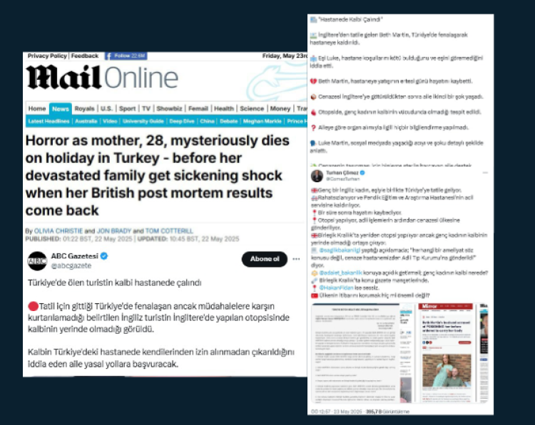 Dezenformasyonla Mücadele Merkezi'nin yayımladığı bültene göre, İngiltere’den İstanbul’a gelen şahıs uçakta rahatsızlanmış, Marmara Üniversitesi Pendik Eğitim ve Araştırma Hastanesi’nde çoklu organ yetmezliği nedeniyle vefat ettiği anımsatılarak, şahsın eşinin seyahat öncesi yedikleri yemekten zehirlenmiş olabileceklerini belirtilerek, bu beyana göre ilk bulgular doğrultusunda olay adli vaka olarak değerlendirildiği kaydedildi. "Ön otopsi yapılsa da ölüm nedeni belirlenememiş, savcılık kararıyla naaş Adli Tıp Kurumu’na sevk edilmiştir" denilen bültende, "Şahsın yaşı ve otopsi bulgularındaki belirsizlikler nedeniyle kalp, histopatolojik inceleme için bütün olarak örneklenmiştir. Naaş ailesine teslim edilmiş, ancak kalp örnekleri üzerindeki otopsi işlemleri devam etmektedir. Uluslararası kamuoyunu manipüle etmeye yönelik bu tür dezenformasyon kampanyalarına itibar edilmemlidir" ifadeleri yer aldı.