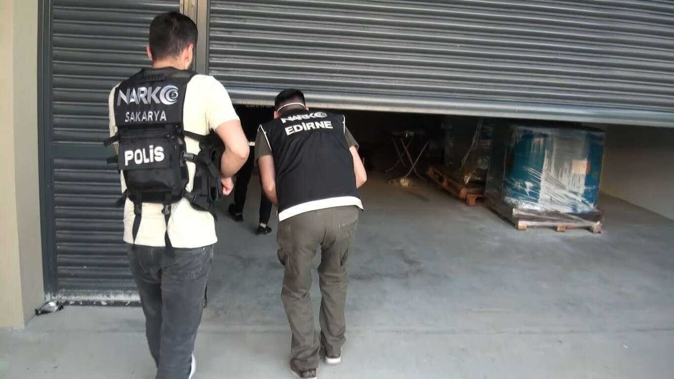 Edirne’de takibe alınan şüphelilerin Sakarya’nın Adapazarı ilçesinde faaliyet gösteren uyuşturucu madde imalathane deposuna gerçekleştirilen operasyonda, 2 ton 200 kilo uyuşturucu yapımında kullanılan hammadde, 8 kilogram 952 gram bonzai, 41 kilogram 500 gram bonzai yapımında kullanılan bitkisel hammadde, 25 bin sentetik ecza, uyuşturucu madde yapımında kullanılan çok sayıda laboratuvar malzemesi ele geçirildi.