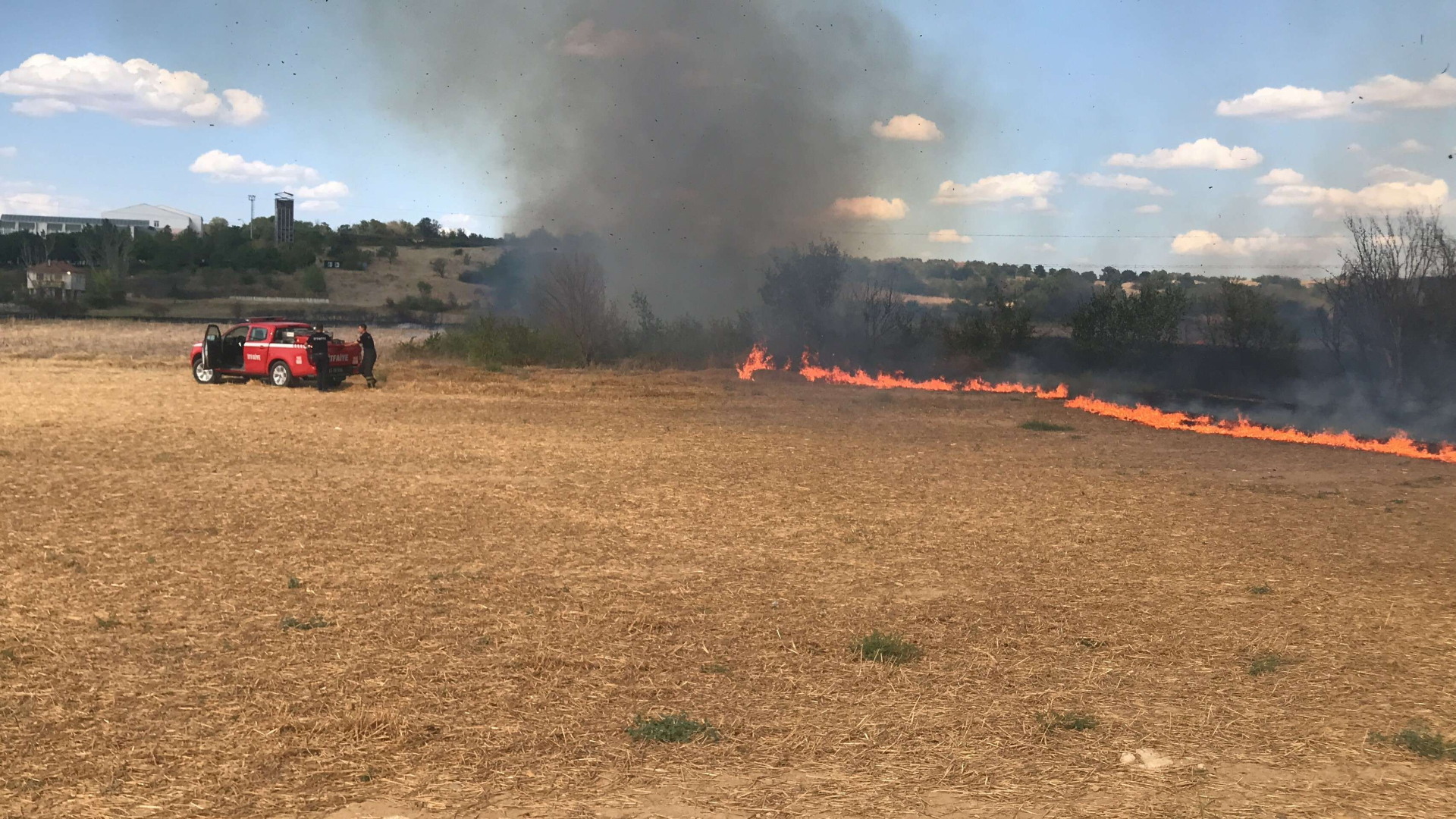 Yangın, Edirne otogarı mevkiinde meydana geldi. Edinilen bilgiye göre, hasadı yapılan ürünlerin bulunduğu tarlada henüz bilinmeyen bir nedenle yangın çıktı. Dumanların yükseldiğini gören vatandaşlar durumu itfaiye ekiplerine bildirdi. İhbar üzerine olay yerine itfaiye ve jandarma ekipleri sevk edildi. Anız yangının büyümesiyle alevler çevredeki ağaçlara sirayet etti. Rüzgarın etkisiyle büyüyen yangını itfaiye ekipleri söndürmek için büyük çaba harcadı. Yangın, yakın alanda bulunan okula ve otoparka sıçramadan ekipler tarafından söndürüldü.