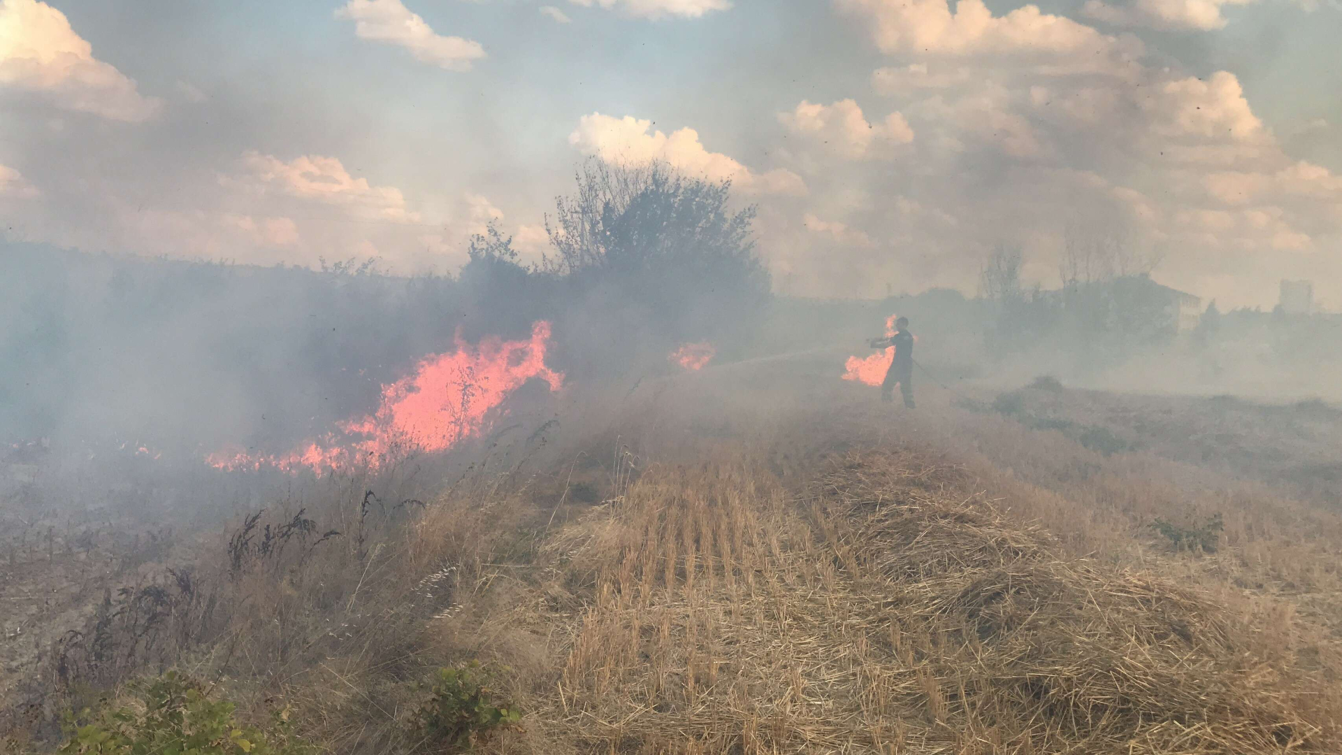 Edirne’de anız yangını okula ve otoparka sıçramadan söndürüldü