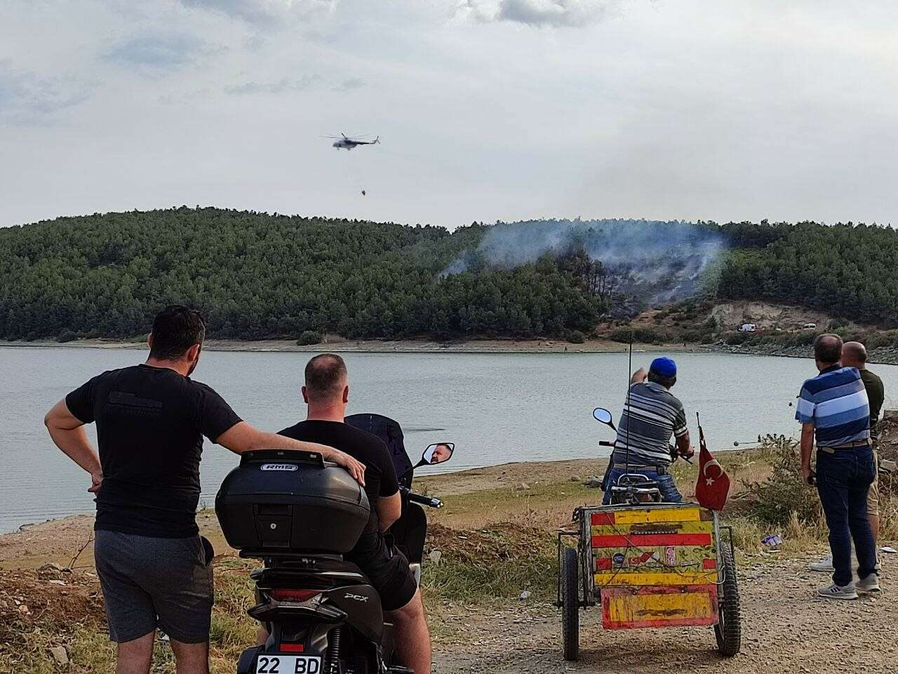 Alınan bilgiye göre, Kocadere Göleti'nin yanında bulunan ormanlık alanda, henüz bilinmeyen bir sebeple yangın çıktı. İhbar üzerine bölgeye Keşan Orman İşletme Müdürlüğü, itfaiye ekipleri sevk edildi. Çanakkale'de konuşlanan 2 yangın söndürme helikopterinin de destek verdiği söndürme çalışmaları devam ederken, gölet etrafında toplanan vatandaşlar, çalışmaları izleyip cep telefonları ile görüntüledi. Bir vatandaş ise yangın söndürme çalışmalarını aracının üzerine oturarak izledi.