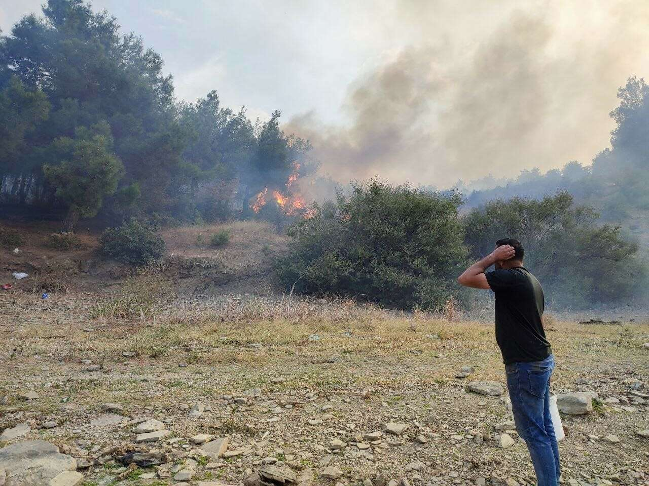 Edirne'nin Keşan ilçesi Kocadere Göleti yanındaki ormanlık alanda çıkan yangında 2 dönüme yakın ormanlık alan zarar görürken, elindeki kovayla alevleri söndürmeye çalışan bir vatandaş ise gözyaşlarını tutamadı.