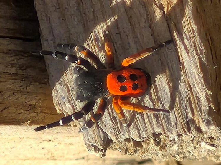 Elazığ'ın Yalındamlar köyünde kuru ve taşlık bir alanda ağaç kabuğu üzerinde, Akdeniz ve Orta Asya'ya özgü nadir türlerden "Uğurböceği Örümceği" (Eresus cinnaberinus) görüntülendi.