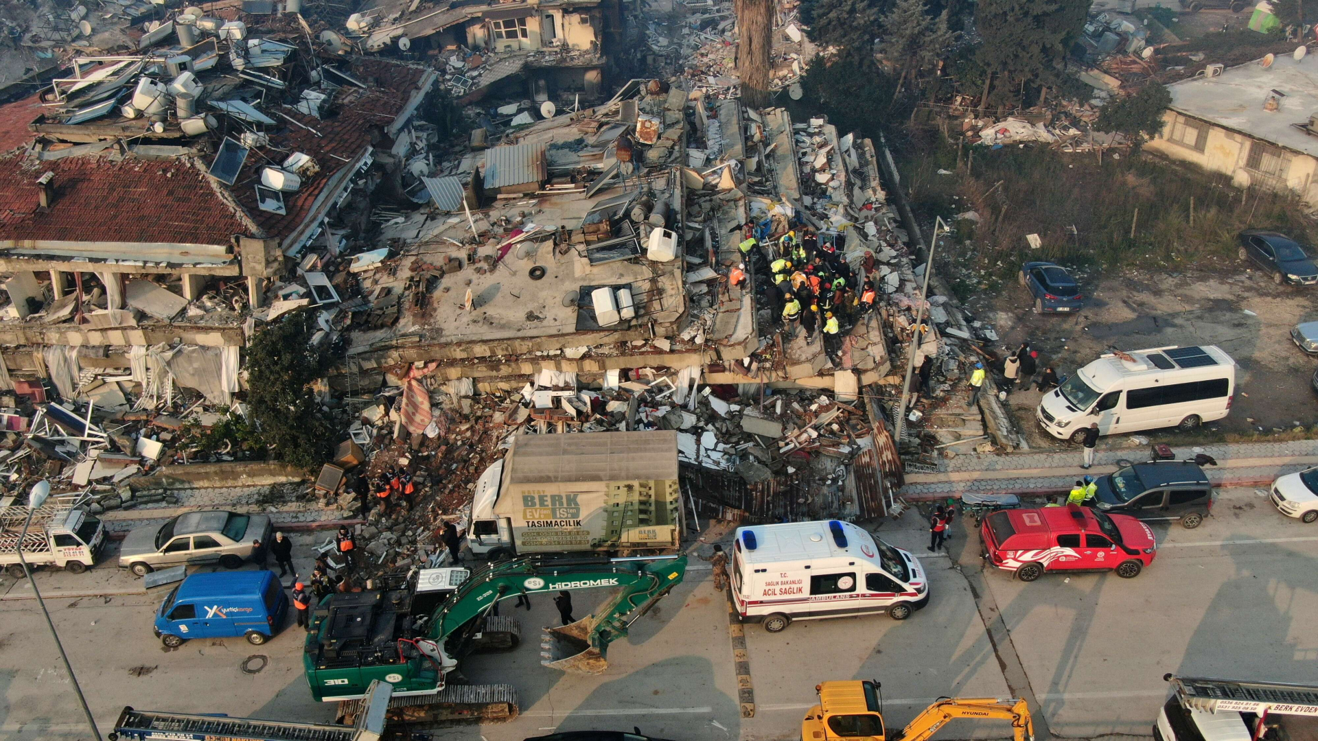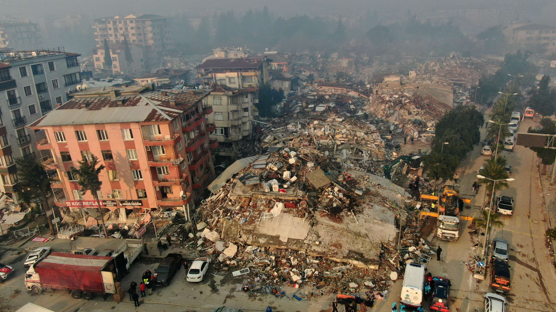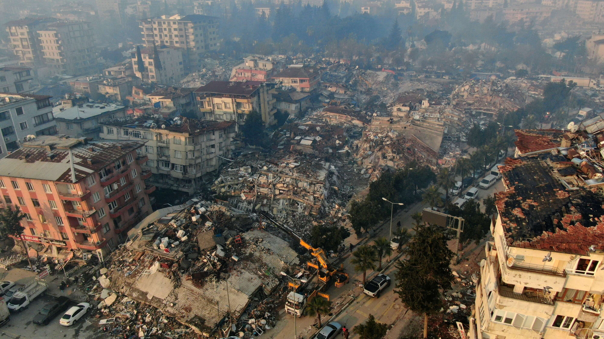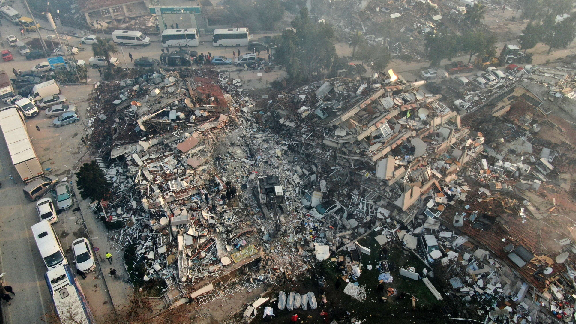 Kahramanmaraş merkezli, Türkiye'nin 10 ilinde ciddi şekilde hissedilen depremde en çok hasarı alan şehirlerden biri olan Hatay'da, yaşanan yıkım dronla havadan görüntülendi