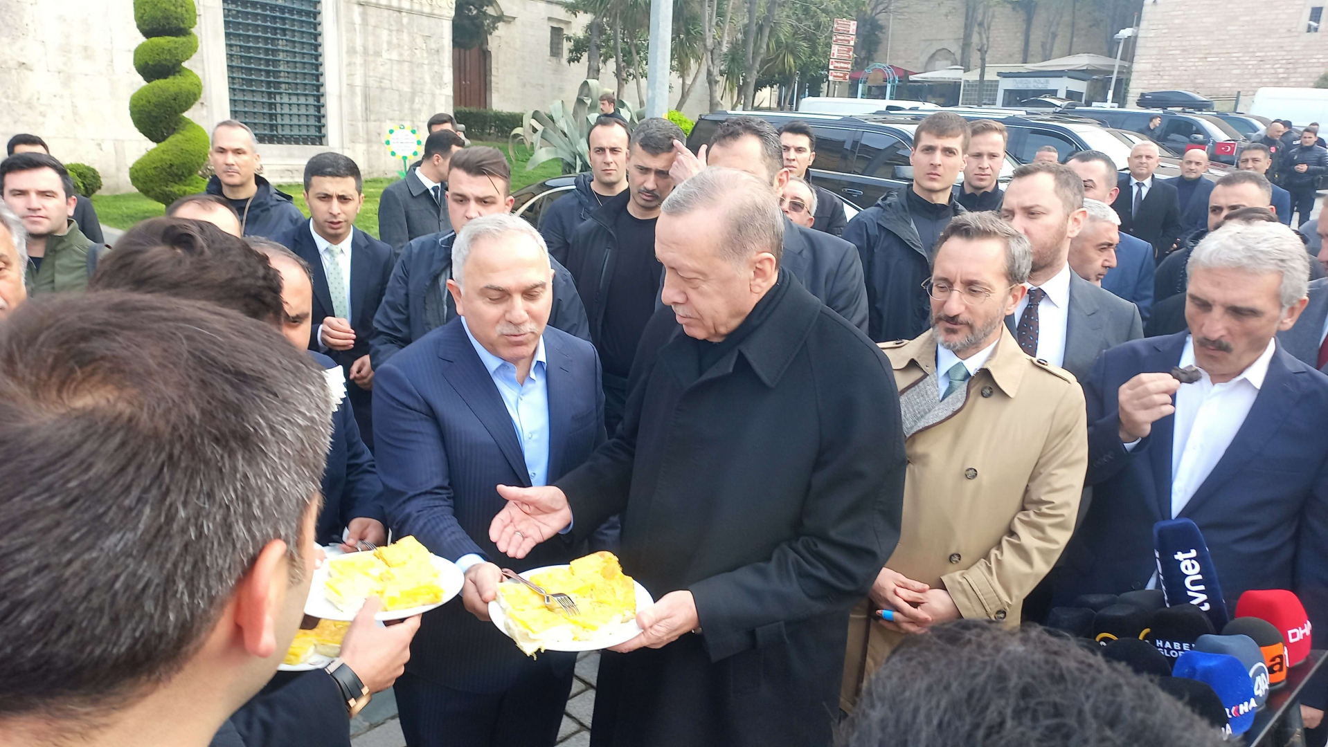 Cumhurbaşkanı Recep Tayyip Erdoğan daha sonra gazetecilere çikolata ve börek ikram etti.