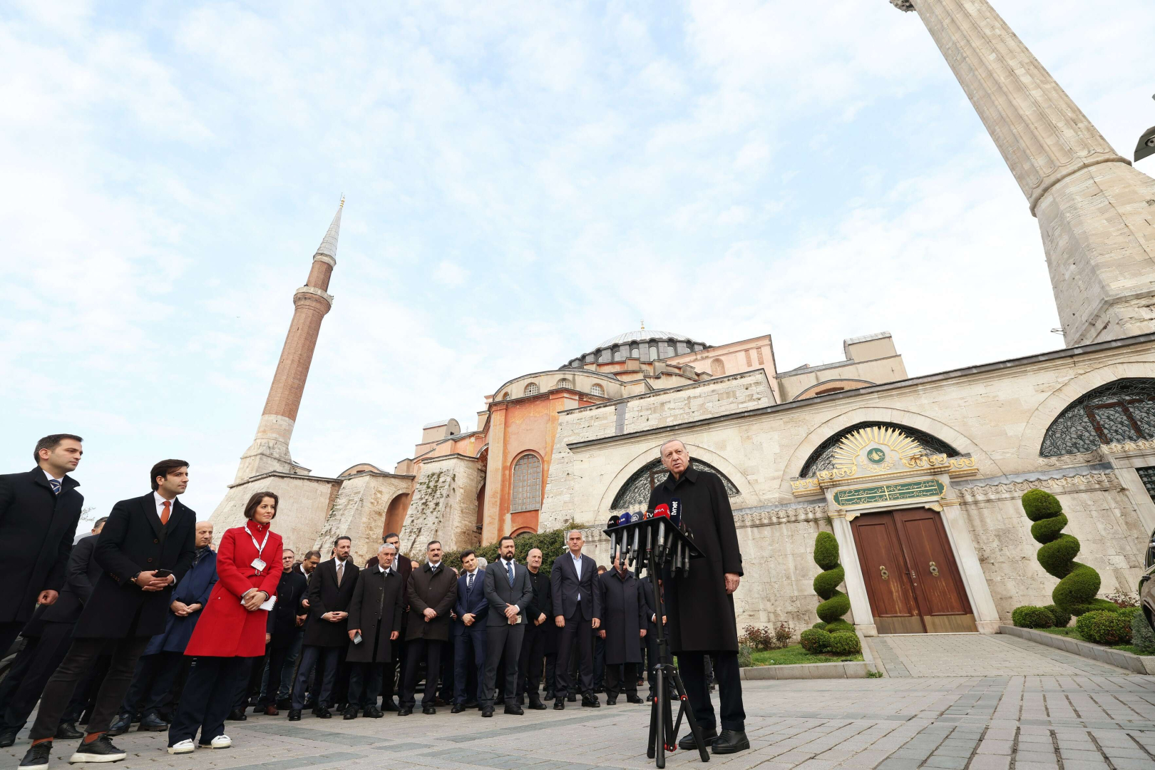 Cumhurbaşkanı Recep Tayyip Erdoğan, Ramazan Bayramı namazını Ayasofya-i Kebir Cami-i Şerifi'nde kıldı. Namaz sonrası vatandaşlarla bayramlaşan ve fotoğraf çekilen Cumhurbaşkanı Erdoğan, daha sonra basın mensuplarına açıklamalarda bulundu.