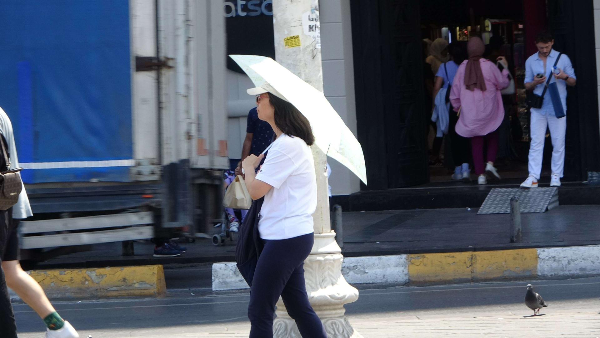 Mega kent İstanbul'da etkili olan "Eyyam-ı Bahur" sıcakları etkisini sürdürüyor. Bunaltan sıcaklar vatandaşlara ve turistlere zor anlar yaşattı. Şehrin en işlek noktalarından biri olan Taksim ve İstiklal Caddesi'ne gelenler, güneşin yakıcı etkisinden şemsiyelerle korunmaya çalıştı. Bazıları ise Gezi Parkı'na uzanarak serinlendi.