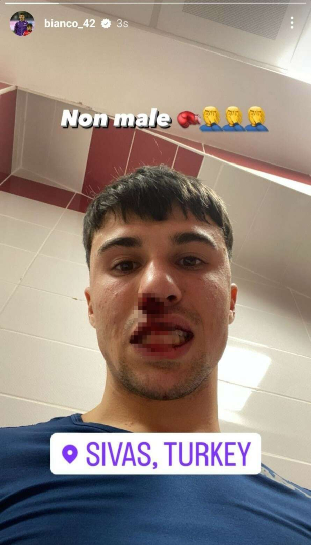 Sahaya giren M.E.Ç., Fiorentinalı Alessandro Bianco’ya yumruk atarak saldırdı. Saldırının ardından Bianco’nun burnu kırılarak kanlar içinde kaldı. Sahadaki polis ekipleri tarafından yakalanan iki taraftar, polis ekipleri tarafından gözaltına alındı. Emniyetteki işlemleri tamamlanan taraftarlar Sivas Adliyesine sevk edildi. Öte yandan, saldırıya uğrayan Bianco, “Non Male” (Fena değil) ifadesiyle sosyal medya hesabından burnunun son halini paylaşmıştı.
