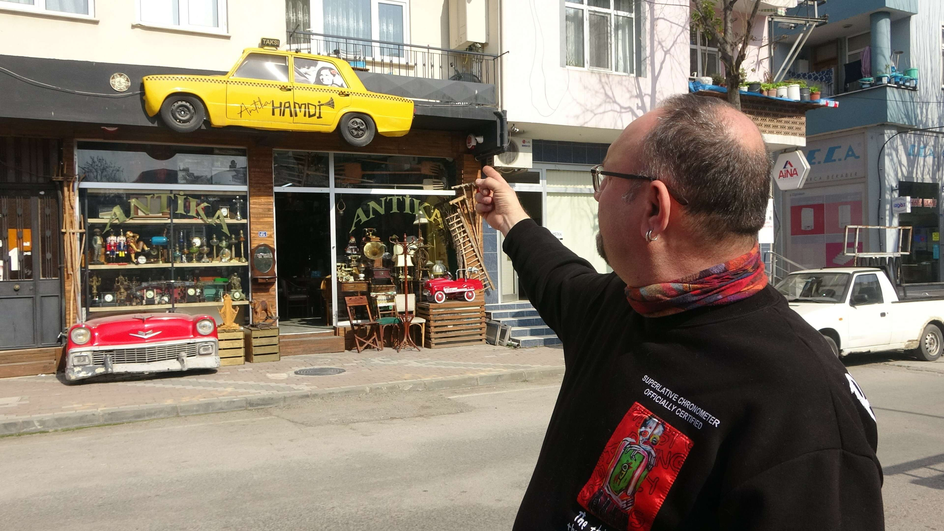 Kocaeli'de antika dükkanı bulunan Hamdi Dinibütünoğlu, 20 bin lirayı bulan tabela ücretine ilginç bir çözüm buldu. Bir zamanların efsane otomobili Murat 124'ü ortadan keserek dükkanına tabela olarak asan Dinibütünoğlu, "Her çocuğun bir araba aşkı vardı, benimkisi Murat 124'dü. İlk arabayı kullanmayı da Murat 124'de öğrendim ve sonunda da tabelam Murat 124 oldu" dedi.