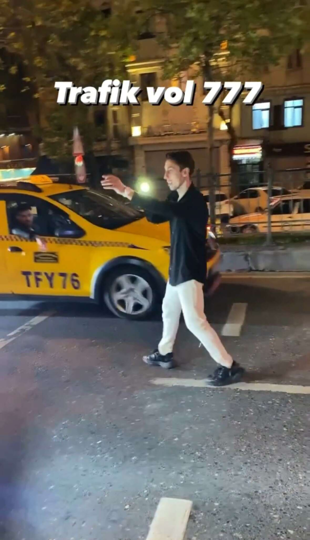 Beyoğlu Tarlabaşı Bulvarı’nda önceki gün meydana gelen olayda, bir şahıs trafikte araçların arasına geçerek sözde uygulama yaptı.