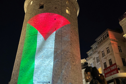 Galata Kulesi’ne Filistin bayrağı yansıtıldı
