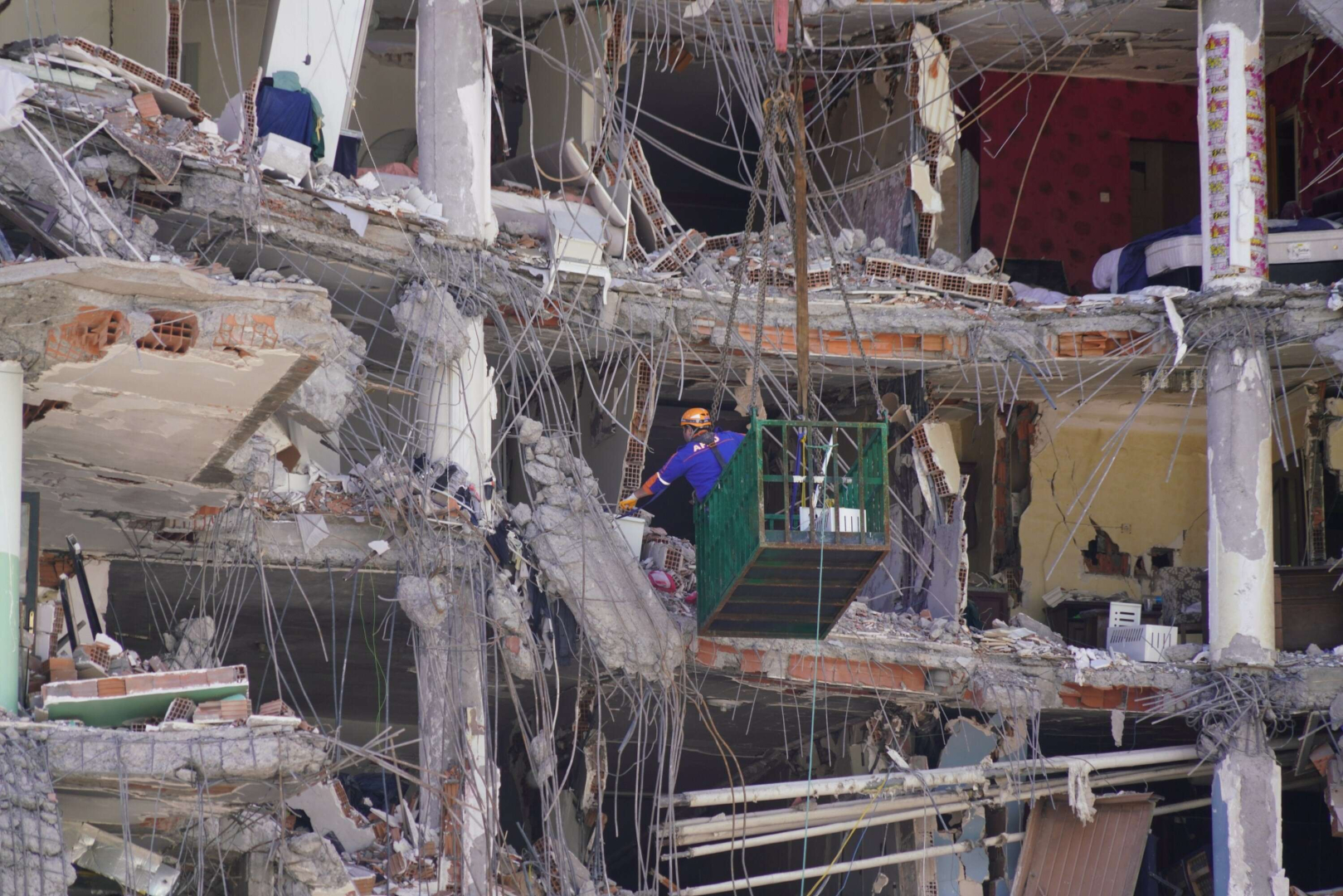 İtfaiye ve AFAD ekipleri 22 Şubat’tan bu yana vinçlerle binada belirlenen noktalara kafes koyarak hassas bir şekilde çalışma yürüttü.