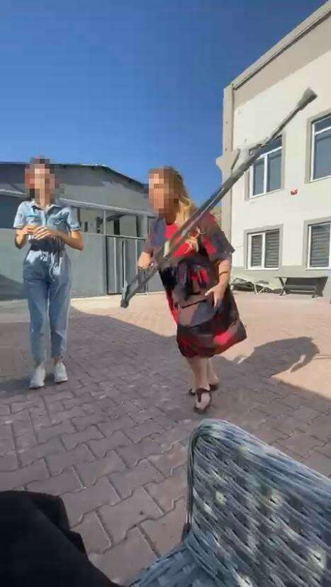 Kayseri Organize Sanayi Bölgesi’nde (OSB) haciz işlemleri için bir fabrikaya giden avukat, kendi koltuk değnekleri ile iş yeri sahibi tarafından darp edildi. İş yeri sahibi kadının hakaret, tehdit ve darp girişimi cep telefonu kamerasına yansıdı.
