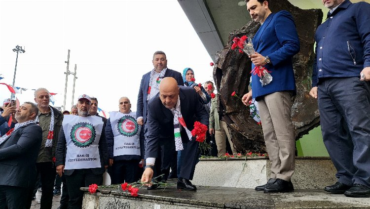 HAK-İŞ Konfederasyonu üyeleri, 1 Mayıs Emek ve Dayanışma Günü'nde Kazancı Yokuşu'na karanfil ve Taksim'e çelenk bıraktı.