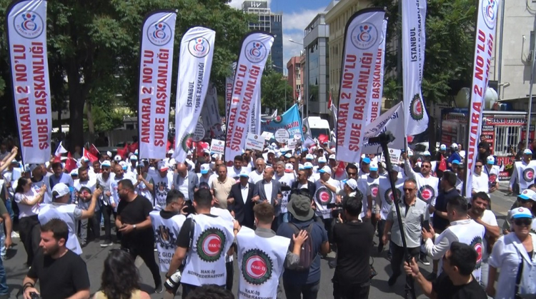 Hak İşçi Sendikaları Konfederasyonu (HAK-İŞ) tarafından Kamu Toplu İş Sözleşmeleri Çerçeve Protokolü'nde (KÇP) işçilerin taleplerinin karşılanması için Hazine ve Maliye Bakanlığı'na yürüyüş ve basın açıklaması düzenlendi.