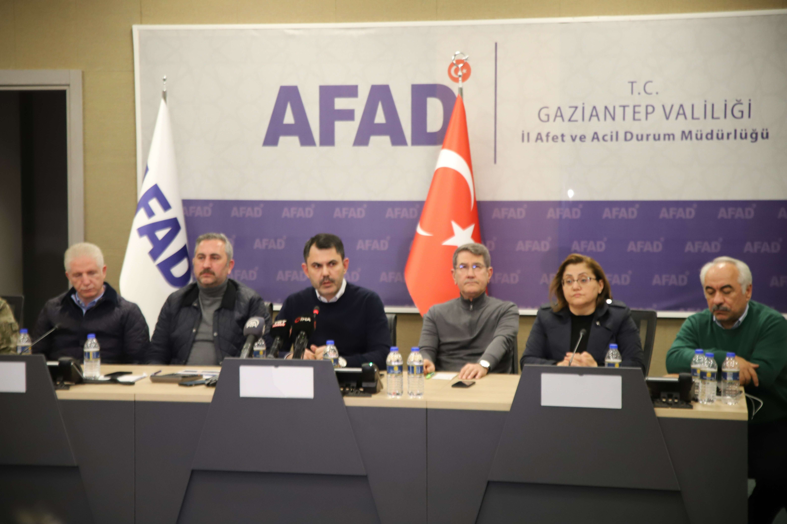 Kahramanmaraş merkezli depremlerde, çok sayıda binanın yıkıldığı ya da hasar gördüğü Gaziantep’e gelen Çevre, Şehircilik ve İklim Değişikliği Bakanı Murat Kurum toplantı düzenledi. Gaziantep AFAD Koordinasyon Merkezi’ndeki toplantıya Bakan Kurum’un yanı sıra, eski Adalet Bakanı Abdülhamit Gül, Gaziantep Valisi Davut Gül, İl Emniyet Müdürü Mustafa Emre Başbuğ, İl Jandarma Komutanı Tuğgeneral Hidayet Arıkan, askeri erkan, AFAD yetkilileri, ve kurum müdürleri katıldı.
