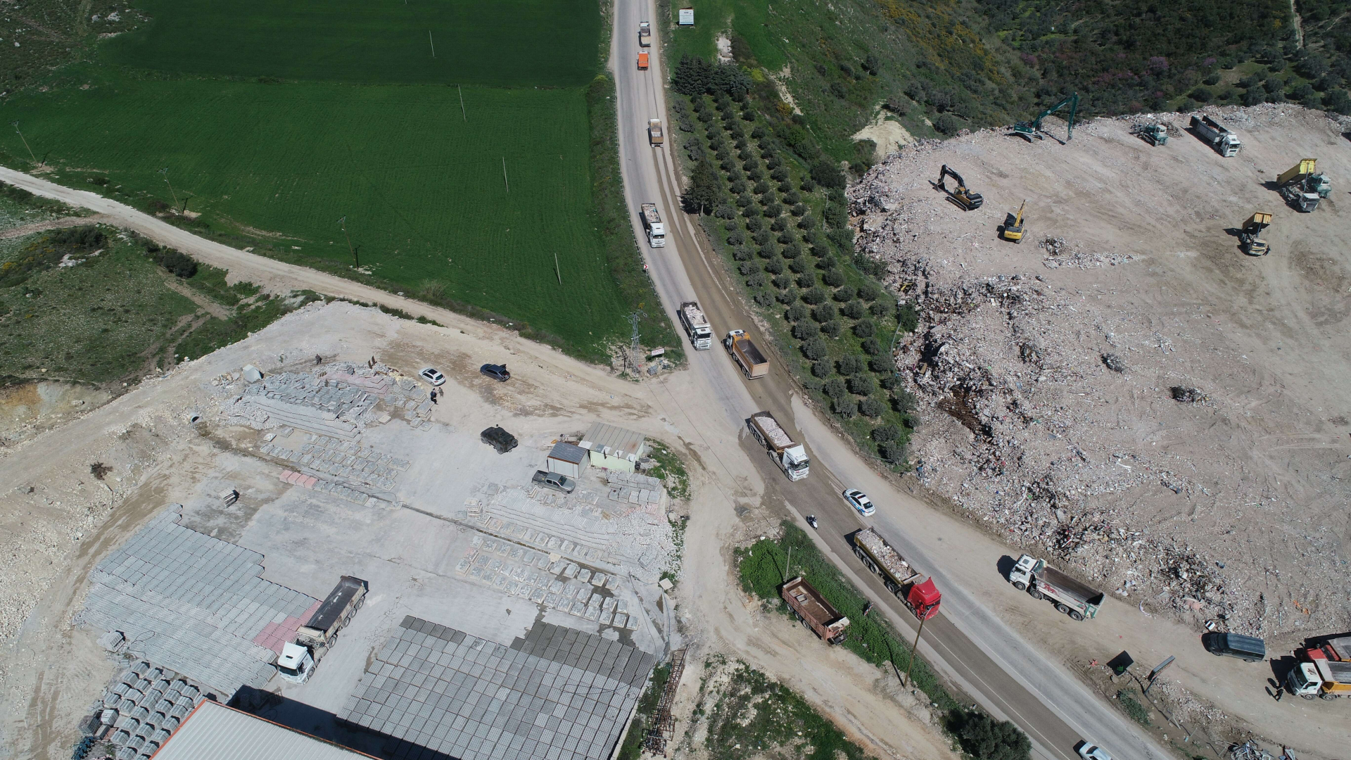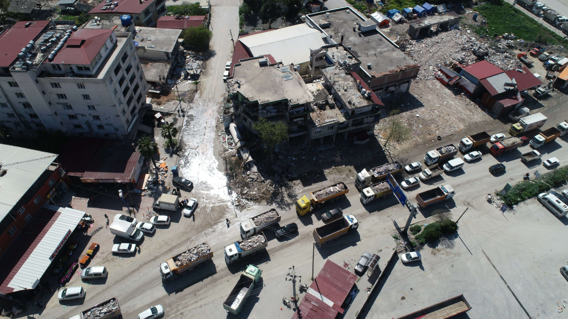 Enkaz kaldırma çalışmalarında Devlet Su İşleri (DSİ) şehir genelinde bugüne kadar 1 milyon 400 bin ton moloz taşıdı. Molozların yüklendiği yüzlerce kamyon her gün peş peşe merkez Antakya ilçesi Narlıca Mahallesi sınırlarındaki bölgeye boşaltma yapıyor. Şu ana kadar 1 milyon 400 bin ton molozun döküldüğü vadide oluşan dağ ve kamyonların oluşturduğu kuyruk, dron ile de görüntülendi.