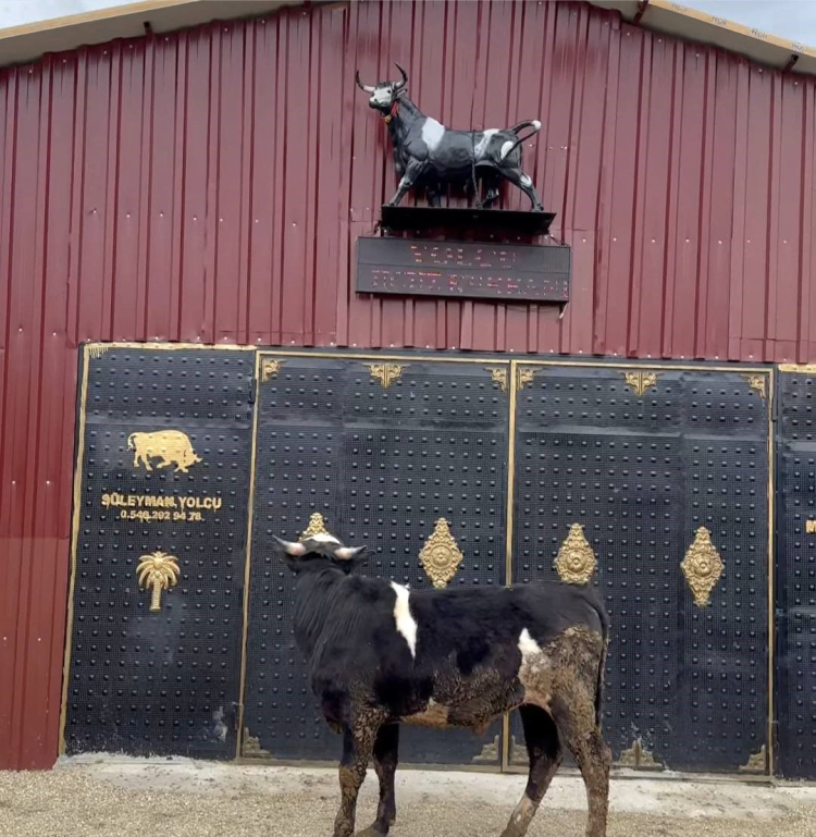 Besici Süleyman Yolcu, 2 yaşındaki Holstein cinsi kurbanlığını dolaşması için dışarı çıkardığını belirterek, "Ahırın çatısındaki boğa heykelini görünce bir süre dikkatle baktı, ardından ürkerek geri kaçtı.