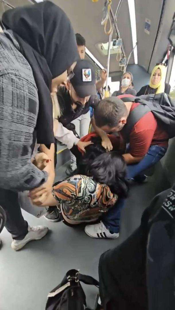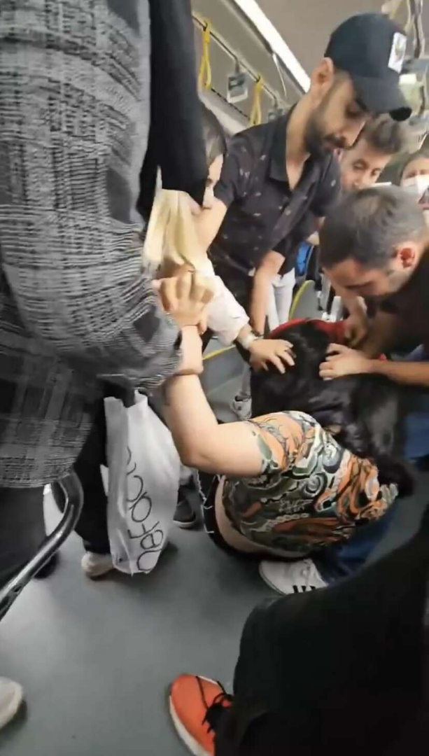 2 kadın saç baş kavga ederken diğer yolcular araya girdi.