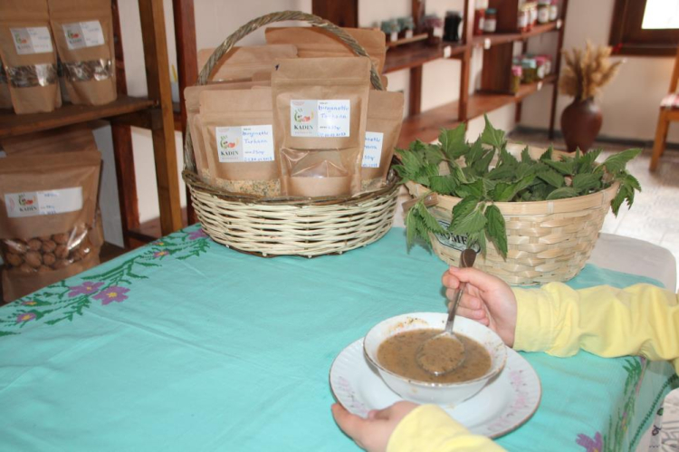 Bilecik'in Gölpazarı ilçesinde 7 kadının kurduğu Nefsi Göl Kadın Girişim ve İşletme Kooperatifi'nde yapılan ve iftar vakti servis edilen ısırgan otlu tarhana çorbasını tadanlar lezzetine bayılıyor.
