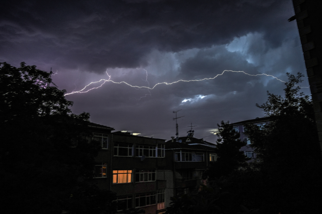 İstanbul'da gün batımında şimşekler gökyüzünü aydınlattı