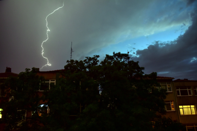 İstanbul'da gün batımında peş peşe çakan şimşekler gökyüzünü aydınlattı.