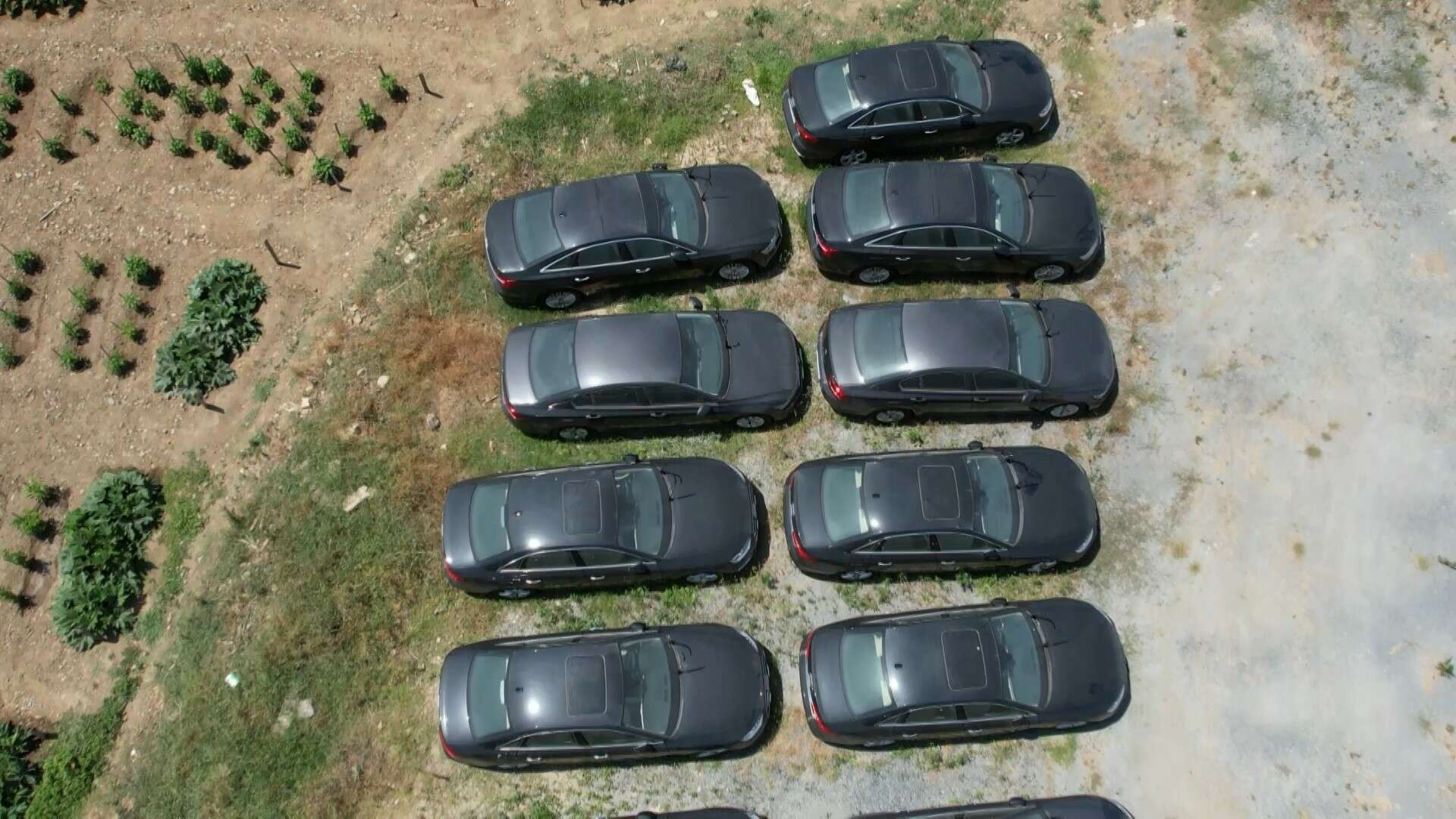 Görüntülerde aynı renk ve modellerden oluşan onlarca aracın yan yana dizildiği ve otoyol ile ormanlık alanın arasında bulunan etrafı çevrili çayırlık alanda stoklandığı görüldü.