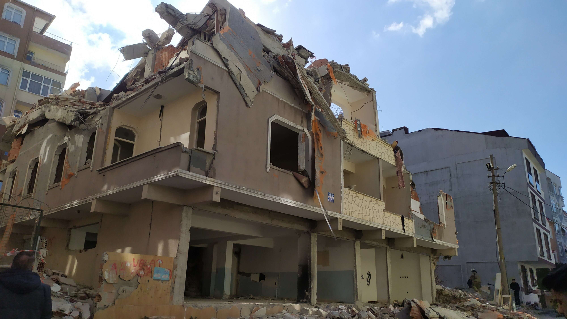 Küçükçekmece Kanarya Mahallesi Yeni Bülbül Sokak'ta kentsel dönüşüm çerçevesinde boşaltılan 3 katlı binanın yıkımı sırasında, yapının bir kısmında çökme meydana geldi. Yıkımda binadan kopan parçalar yola ve yan bahçeye düştü. Haber verilmesi üzerine olay yerine itfaiye ve polis ekipleri sevk edildi.