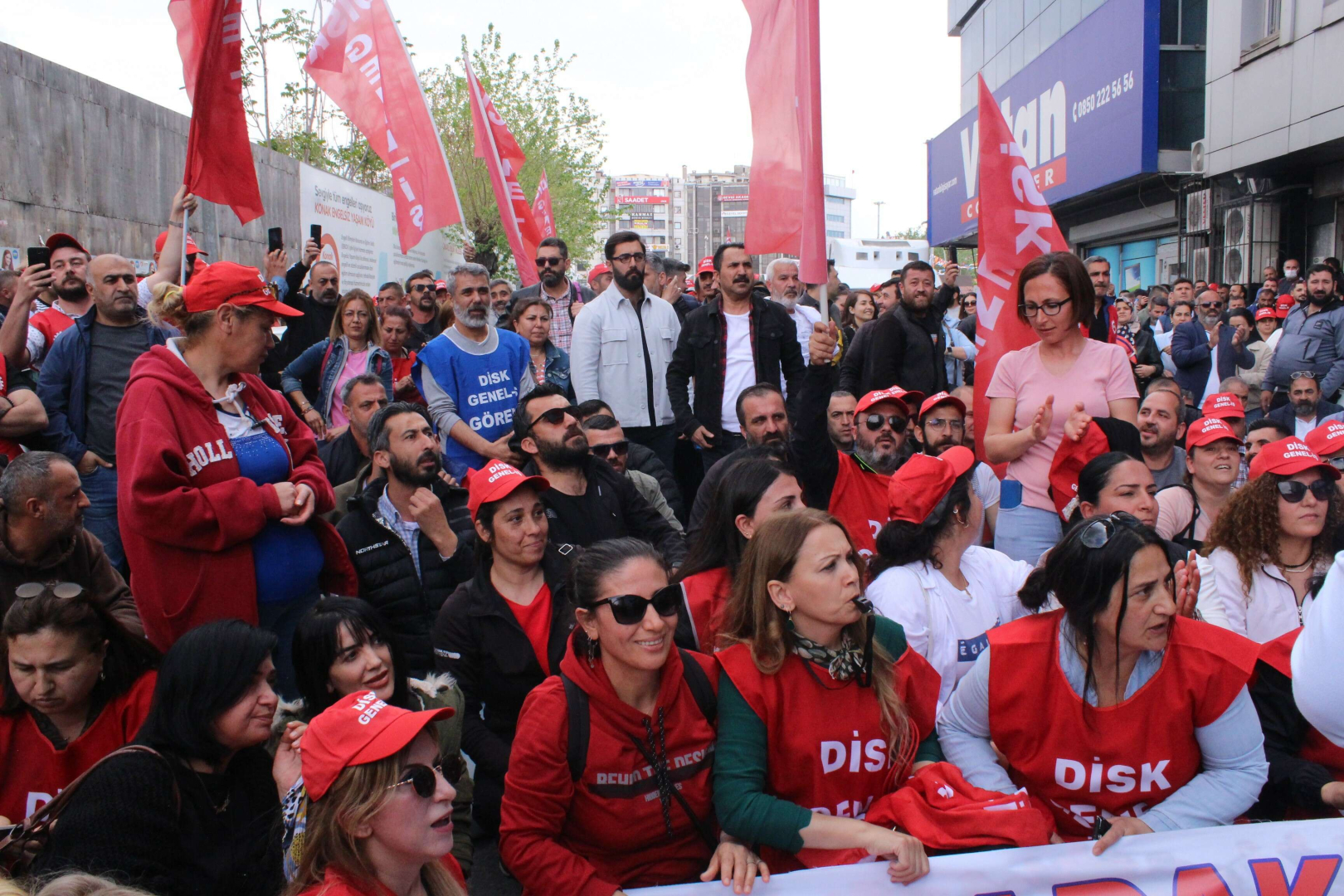 Toplantıya katılmadan önce işçilere açıklama yapan Genel İş 2 No'lu Şube Başkanı Ercan Gül ve 9 No'lu Şube Başkanı Sedat Kenar, “Yüzde 45 teklif üzerine yarım gün iş bırakarak buraya geldik. Teklifi kabul etmediğimizi belirttik. 2 saat önce çağrı geldi saat 13.00’da Genel Sekreter Barış Karcı, SODEMSEN ve şirket genel müdürleriyle bir araya geleceğiz. Eğer görüşmede işçinin mutlu olmayacağı teklif gelmezse bu eylemimiz yarın da devam edecek. Huzurunuza gelip teklifi hep birlikte değerlendireceğiz” dedi.