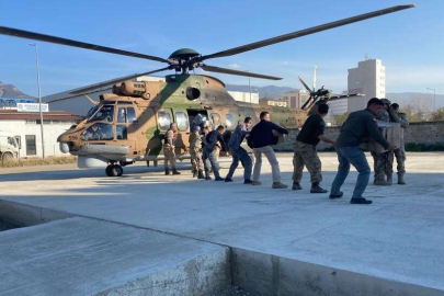 Türkiye'yi yasa boğan depremlerin yaralarının sarılması için tüm kurumlar sahada görev yaparken, jandarma da depremzedeler için ilk andan itibaren sahada çalışmasını sürdürüyor. Hem güvenlik hem de ihtiyaç malzemelerinin vatandaşlara ulaştırılması için çalışmasını sürdüren jandarma, helikopterler sayesinde hızlı destek sağlıyor. Jandarma Genel Komutanı Orgeneral Arif Çetin, son olarak Hatay'ın Payas ilçesine de bazı bölgeler için çadır ve ihtiyaç malzemesini helikopterle gönderdi.
