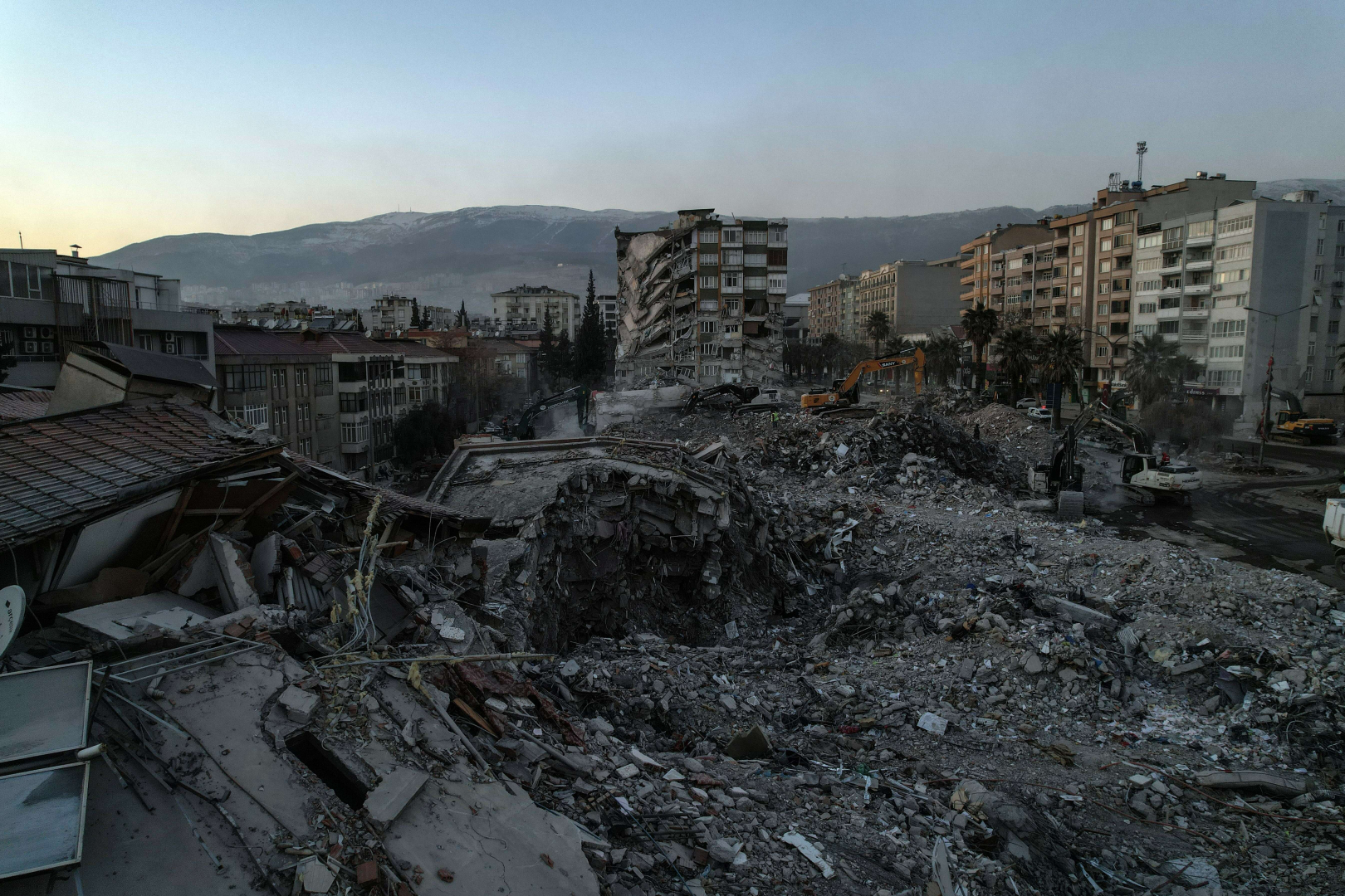 Kahramanmaraş merkezli meydana gelen iki büyük depremin ardından yıkılan binaların enkaz kaldırma çalışmaları ve arama kurtarma çalışmaları aralıksız devam ederken yapılan çalışmalar dron ile havadan görüntülendi.