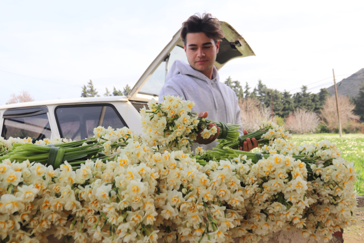 İzmir'in Karaburun ilçesinde üretilen; beyaz ve sarı çiçekleri, narin görüntüsü ve güzel kokusuyla bilinen nergis çiçeğinde hasat başladı. Bölgede yetişen ‘sulu nergis' olarak adlandırılan çiçeklerin hasadı kasım ayında başlayıp ocak ayının başlarına kadar sürerken, doğada kendiliğinden yetişen ve ‘susuz nergis' olarak adlandırılan tür ise ocak ayı itibarıyla hasat edilmeye başlandı. Sabahın erken saatlerinden itibaren nergisleri toplayan çiftçiler, ürünleri özenle demetliyor. Toplanıp araçlara yüklenen çiçekler, daha sonra Türkiye'nin dört bir yanına gönderilerek koku ve süs amacıyla kullanılıyor.