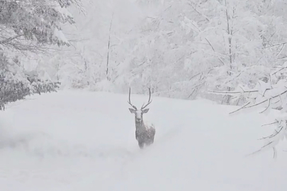 Karla kaplı alanlarda kızılgeyik güzelliği