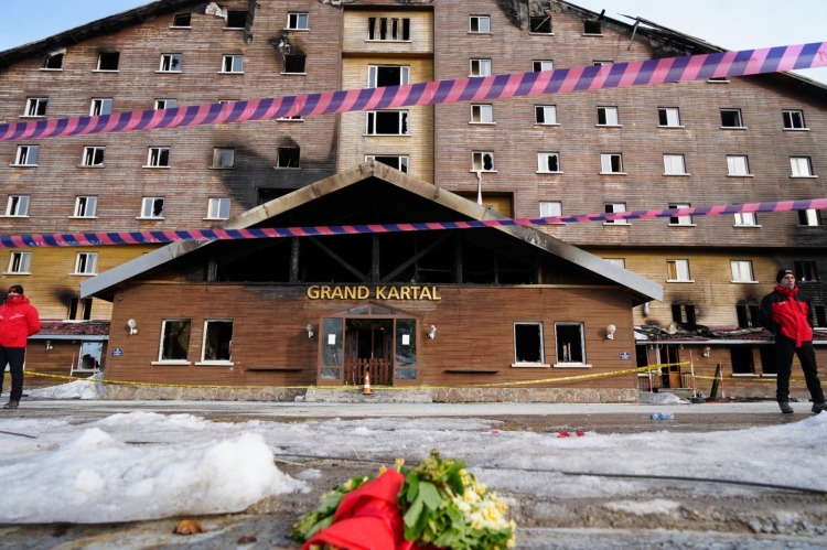 Kartalkaya Kayak Merkezi'ndeki Grand Kartal Otel'de 21 Ocak'ta çıkan yangında 36'sı çocuk 78 kişi hayatını kaybetmiş, 51 kişi de yaralanmıştı. Yangında hayatını kaybedenler için sivil toplum kuruluşları tarafından anma programı düzenlendi. Programda saygı duruşunda bulunularak, otel önüne karanfil bırakıldı.