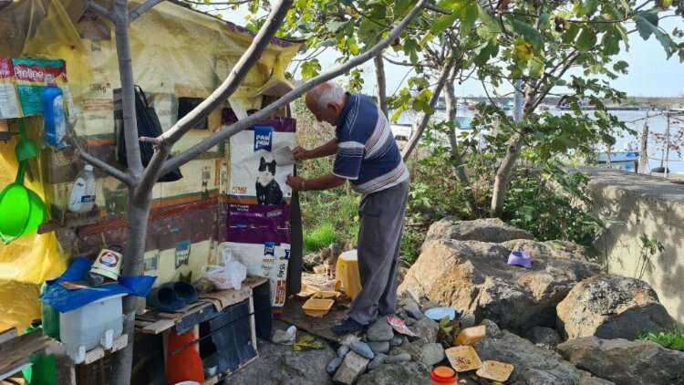 Kedileri çok sevdiğini ve 25 yıldır limana gelerek kedilere baktığını söyleyen Hasan Kırmacıoğlu, "Bazı insanlar yaz aylarında besledikleri kedi ve köpekleri giderken sokağa bırakıyorlar. Emekli maaşımı bunlara harcıyorum. Çevre köylerden ve sitelerden getirip buraya hayvan bırakanlar oluyor. Ne olur duyarlı olalım. Kışın sokakta kalmasınlar diye limanda bir yer yaptık ama çok sağlıklı bir durum yok. Bunun için mutlaka yardım gerekiyor" şeklinde konuştu.