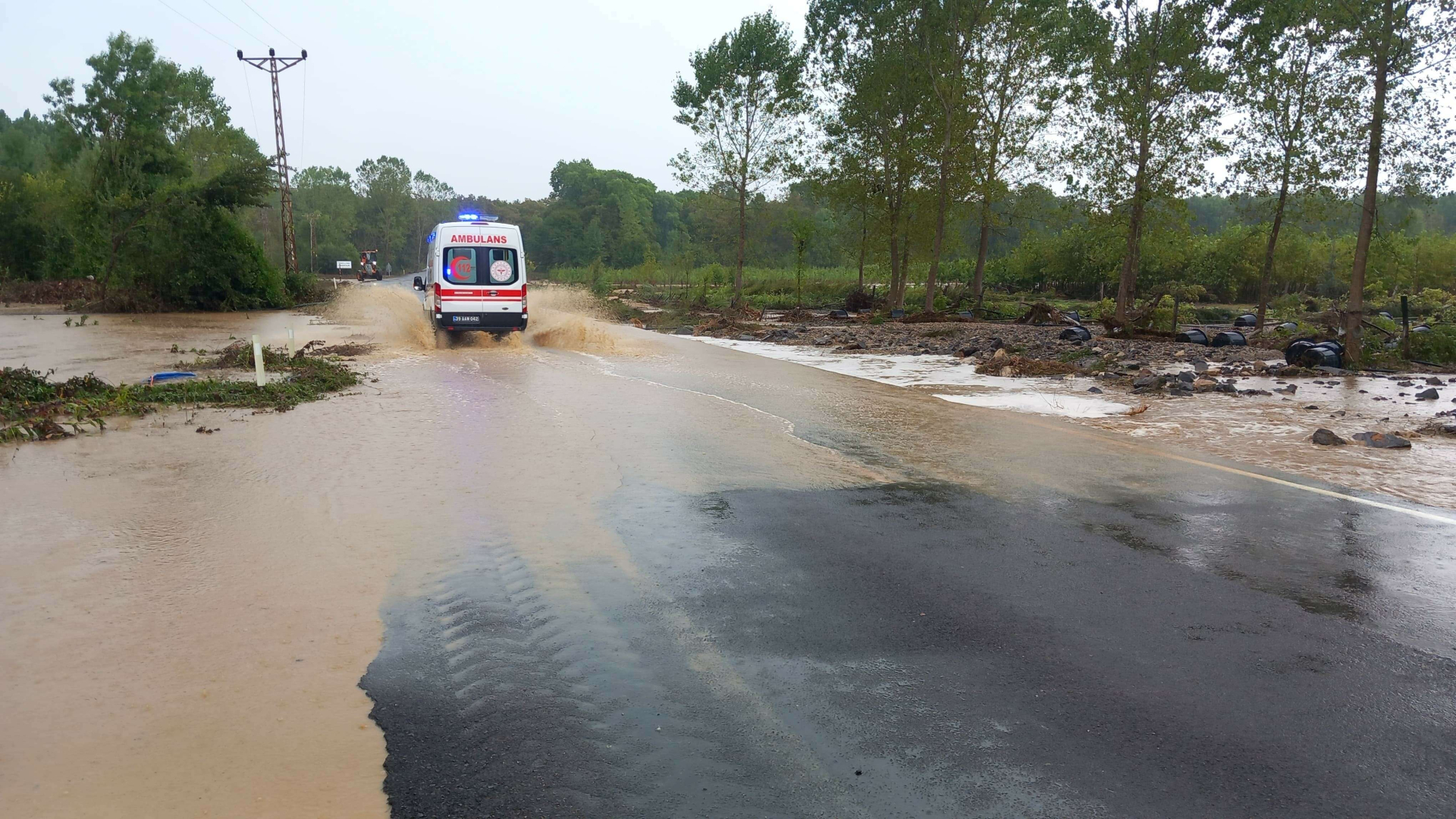 Kırklareli'de bu saatlerinde bir anda bastıran şiddetli yağış dereleri taşırdı. Derelerin taşmasıyla İğneada Demirköy arasında bulunan bağlantı yolları sular altında kaldı.