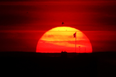 İstanbul’da gün batımı izleyenleri hayran bıraktı. Türk bayrağının kızıla bürünen güneşin önünde dalgalandığı anlar kartpostallık görüntüler oluşturdu. Vatandaşlar o anları görüntülemek için telefonlarına sarıldı.