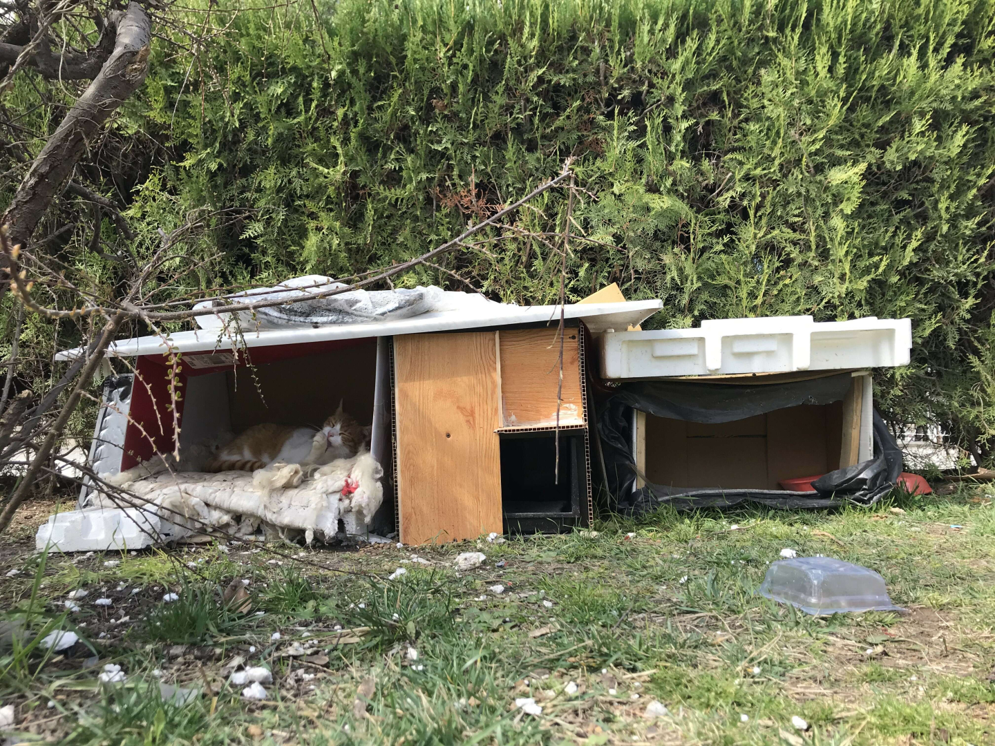 Komşularının istemediği kedileri için parka ev yaptı
