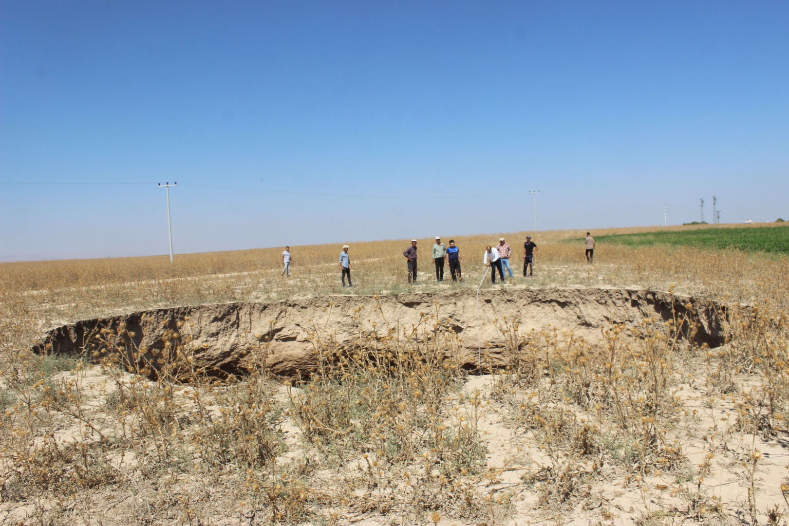 Konya'nın Karapınar ilçesinde yaklaşık 20 metre çapında yeni bir obruk meydana geldi.