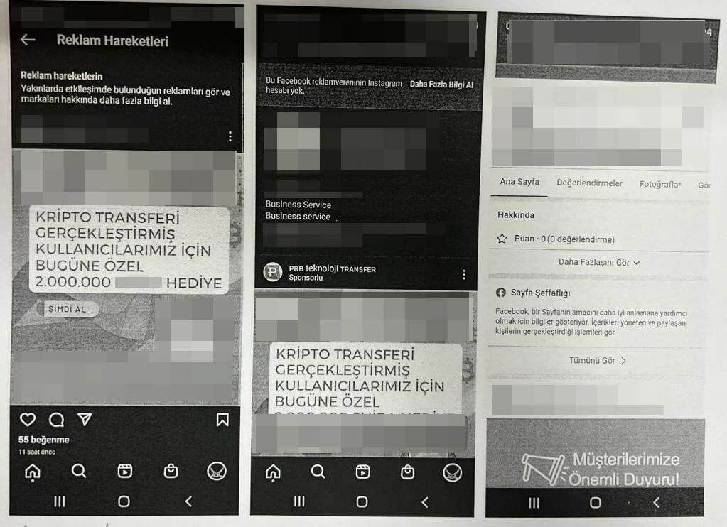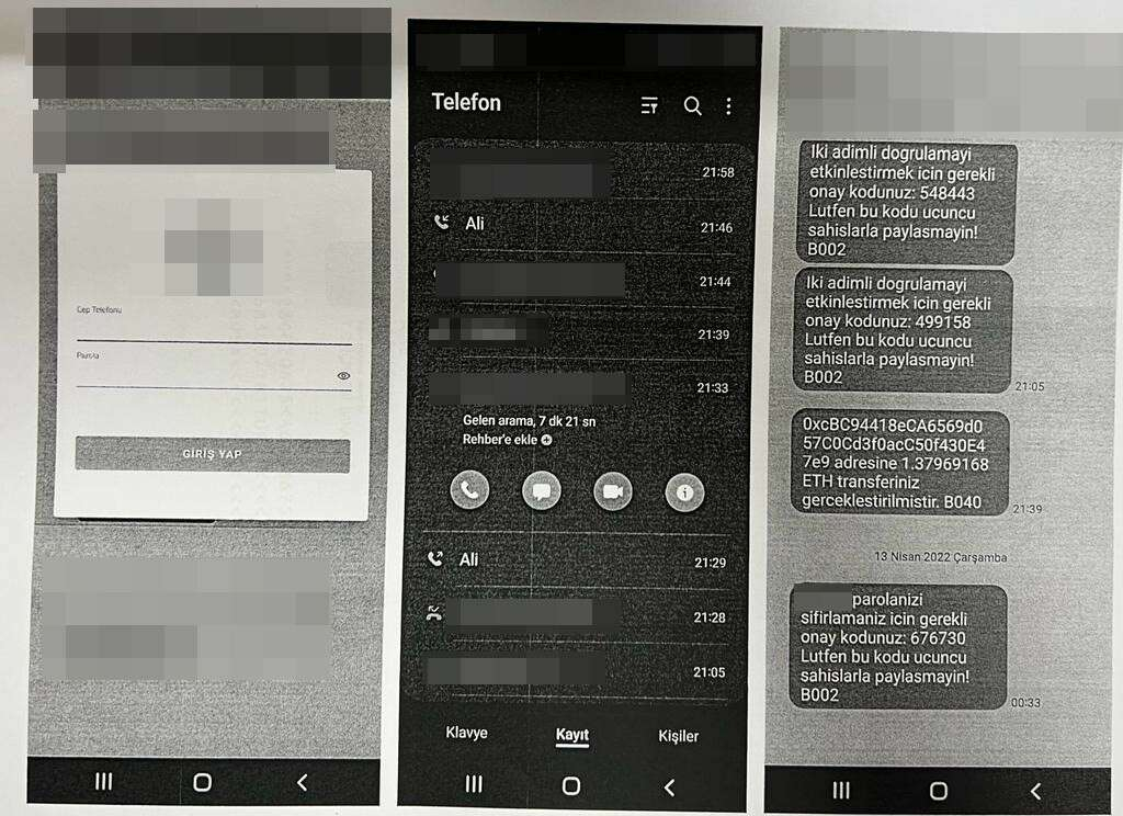 Öte yandan olayla ilgili yapılan çalışmalarda, dolandırıcıların telefonlara ünlü bir kripto para sitesini taklit edip, '5. yıla özel kripto para dağıtılıyor' vaadi ile cep telefonlarına kısa mesaj gönderdiği, mesaj üzerinden gönderilen linke tıklandığında kullanıcı adı ve şifre giren vatandaşların daha sonra da alınan GSM onayıyla kripto paralarının ele geçirildiği öğrenildi. Şebeke üyelerinin ele geçirdiği kripto hesaplarındaki paraların ise özellikle dolandırıcıların yurt dışındaki hesaplarına aktarıldığı ortaya çıktı. Dolandırıcıların bu yöntemle çok sayıda vatandaşı yaklaşık 50 milyon lira dolandırdığı tespit edildi.